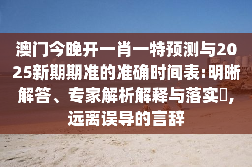 關(guān)于澳門今晚開一肖一特預(yù)測(cè)與2025新期期準(zhǔn)的準(zhǔn)確時(shí)間表——明晰解答、專家解析解釋與落實(shí),警惕虛假宣傳