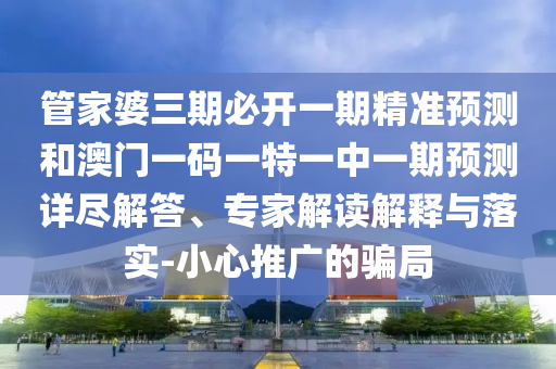 管家婆三期必開一期精準預測和澳門一碼一特一中一期預測詳盡解答、專家解讀解釋與落實-小心推廣的騙局