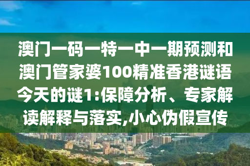 澳門一碼一特一中一期預測和澳門管家婆100精準香港謎語今天的謎1:保障分析、專家解讀解釋與落實,小心偽假宣傳