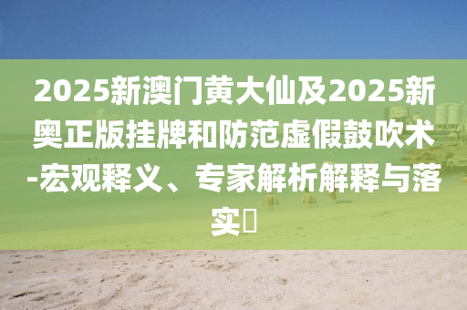 2025新澳門黃大仙及2025新奧正版掛牌:宏觀釋義、專家解析解釋與落實?