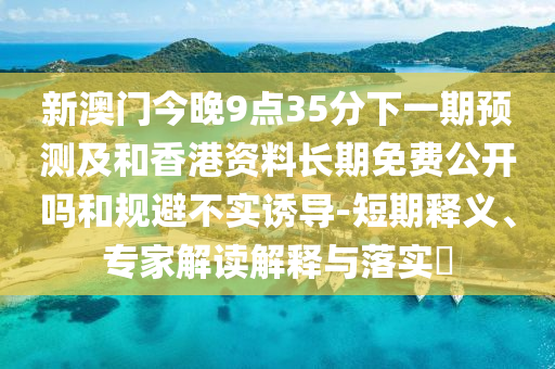 新澳門今晚9點35分下一期預(yù)測及和香港資料長期免費公開嗎和規(guī)避不實誘導-短期釋義、專家解讀解釋與落實?