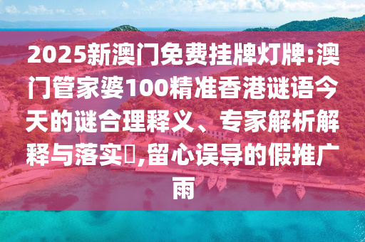 2025新澳門免費(fèi)掛牌燈牌:澳門管家婆100精準(zhǔn)香港謎語今天的謎合理釋義、專家解析解釋與落實?,留心誤導(dǎo)的假推廣雨