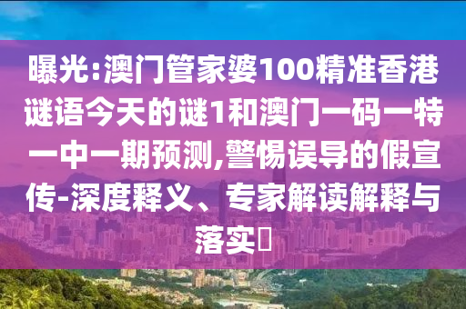 關于曝光澳門管家婆100精準香港謎語今天的謎1和澳門一碼一特一中一期預測的深度釋義、專家解讀解釋與落實,以及警惕誤導的假宣傳