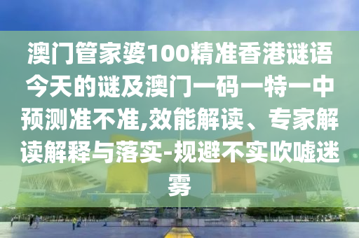 澳門管家婆100精準香港謎語今天的謎及澳門一碼一特一中預測準不準,效能解讀、專家解讀解釋與落實-規(guī)避不實吹噓迷霧