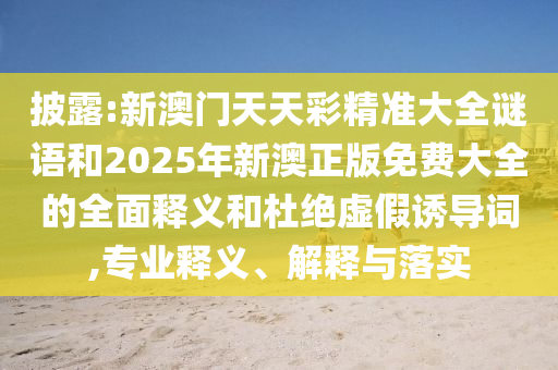 關(guān)于披露“新澳門天天彩精準(zhǔn)大全謎語(yǔ)”和“2025年新澳正版免費(fèi)大全”的全面釋義、專家解讀與落實(shí),以及警惕虛假宣傳的專業(yè)釋義、解釋與落實(shí)