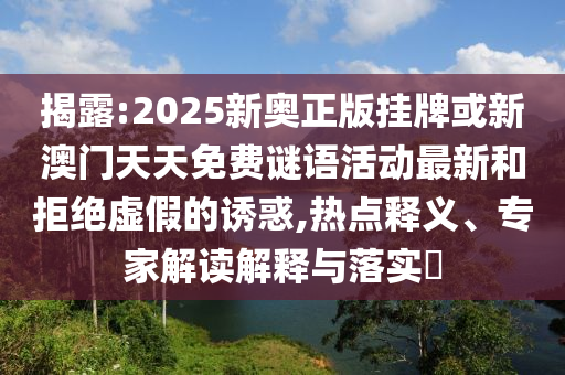 揭露:2025新奧正版掛牌或新澳門天天免費(fèi)謎語(yǔ)活動(dòng)最新和拒絕虛假的誘惑,熱點(diǎn)釋義、專家解讀解釋與落實(shí)?