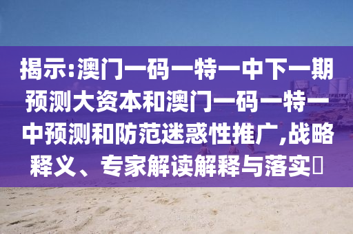 澳門一碼一特一中下一期預測大資本和澳門一碼一特一中預測的戰(zhàn)略釋義、專家解讀解釋與落實?