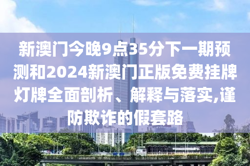 新澳門今晚9點(diǎn)35分下一期預(yù)測(cè)”和“2024新澳門正版免費(fèi)掛牌燈牌”的解析、解讀與落實(shí),以及謹(jǐn)防欺詐的假套路的全面剖析和解釋
