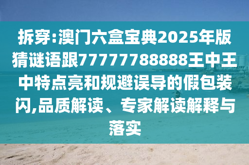 拆穿:澳門六盒寶典2025年版猜謎語跟77777788888王中王中特點亮和規(guī)避誤導的假包裝閃,品質(zhì)解讀、專家解讀解釋與落實