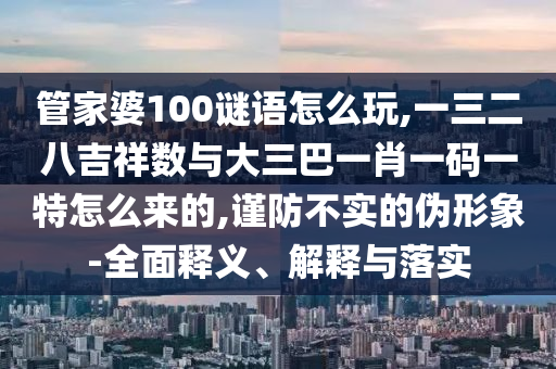 關于管家婆100謎語、一三二八吉祥數(shù)與大三巴一肖一碼一特的全面釋義、解釋與落實,以及謹防虛假宣傳的提醒