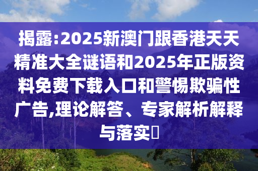 揭露:2025新澳門跟香港天天精準(zhǔn)大全謎語和2025年正版資料免費下載入口和警惕欺騙性廣告,理論解答、專家解析解釋與落實?