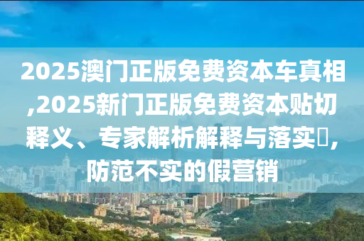 2025澳門正版免費(fèi)資本車真相,2025新門正版免費(fèi)資本貼切釋義、專家解析解釋與落實?,防范不實的假營銷