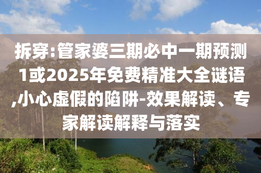 拆穿:管家婆三期必中一期預(yù)測1或2025年免費精準(zhǔn)大全謎語,小心虛假的陷阱-效果解讀、專家解讀解釋與落實